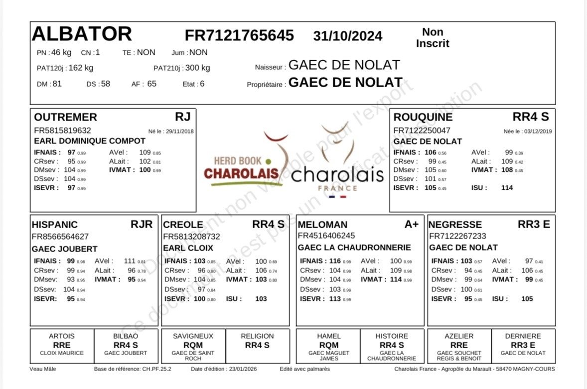 ALBATOR est un veau avec une belle ligne de dos, un gros carré de cul et beaucoup de finesse.