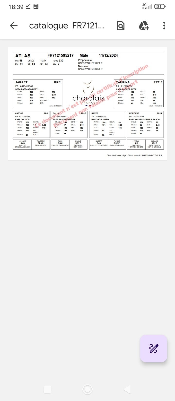 Gros veau de 13 mois, fils de Jarret (IA) avec une mère issue d un taureau utilisé sur génisse dans l élevage, qui a laissé de nombreuses vaches doté de très bonnes qualités maternelle.